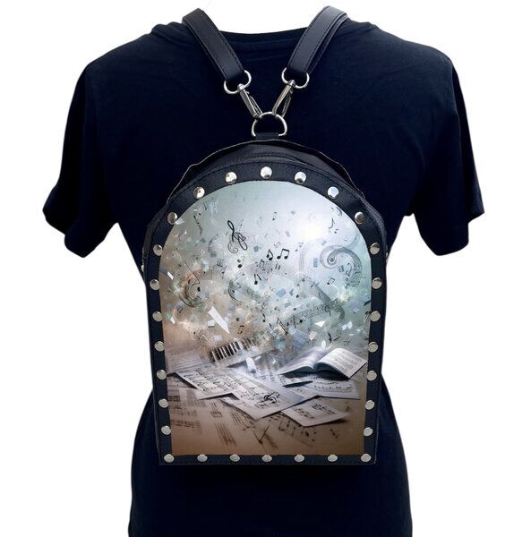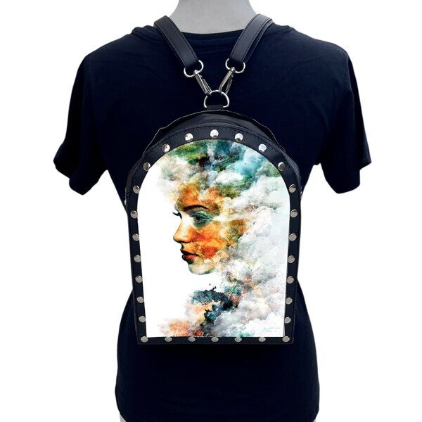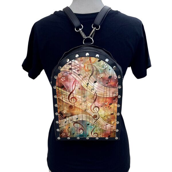 Borsa cartella con rivetti e fantasia foglie elfiche.