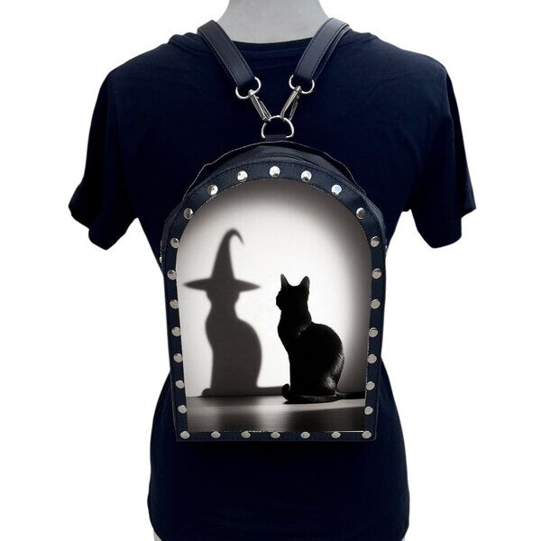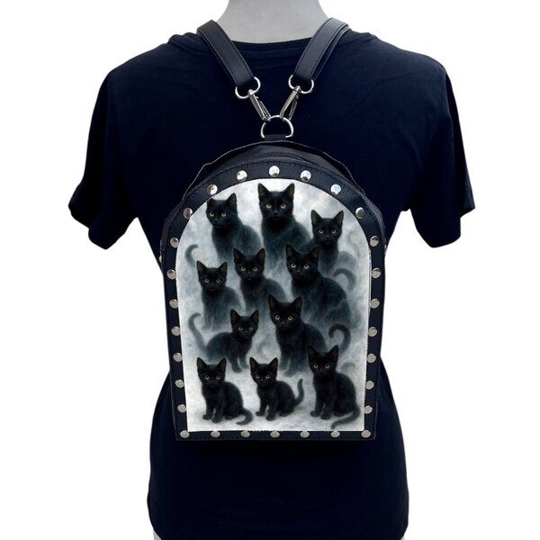 Borsa in similpelle e fantasia plastificata gattini neri.