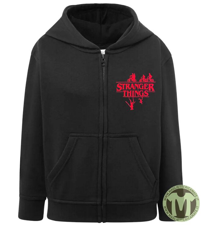 Felpa unisex con cerniera "Stranger Things" a lato cuore.