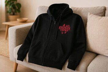 Felpa unisex con cerniera "Stranger Things" a lato cuore.
