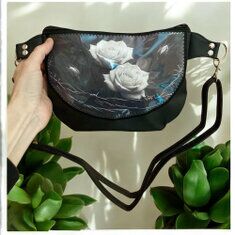 Marsupio in similpelle e stampa plastificata gatti e monstera.