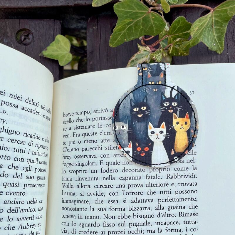Segnalibro in similpelle con inserto in tela stampata con gattini