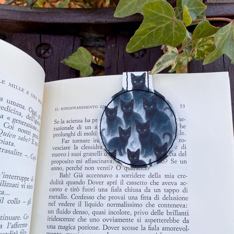 Segnalibro in similpelle con inserto in tela con gattini mistici.